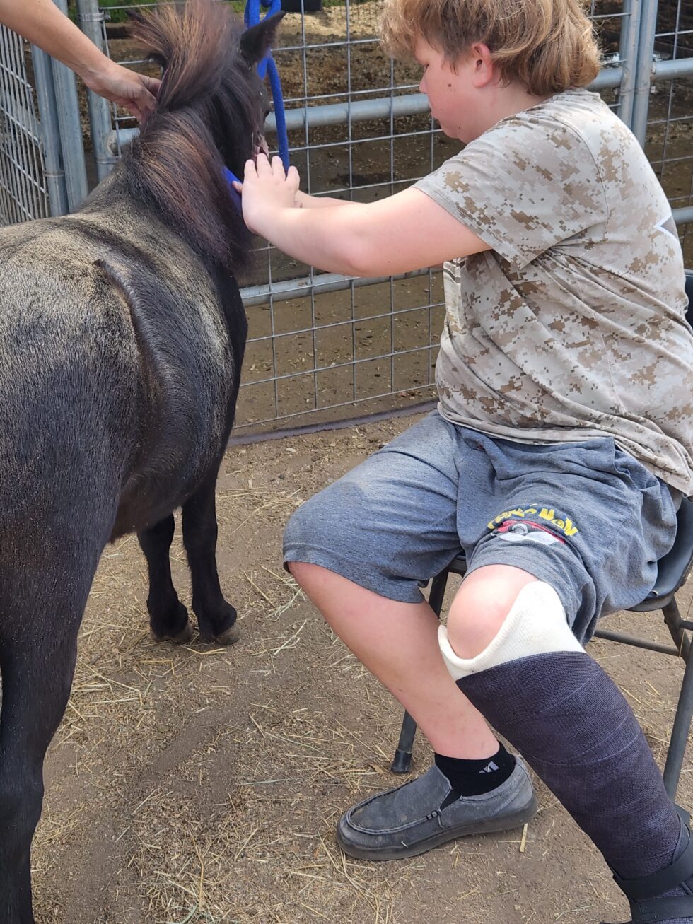 Pony Playtime is open to any age and ability children 2 years to 100+ years old. Each session will be 45-60 mins of one-on-one time with a mini horse for a donation fee of $75. It will include basic horse safety, learning basic body parts, grooming, foot care, and educational learning based on the child’s age! We implement games to help with the educational aspect which also teaches the children confidence, courage, and respect.