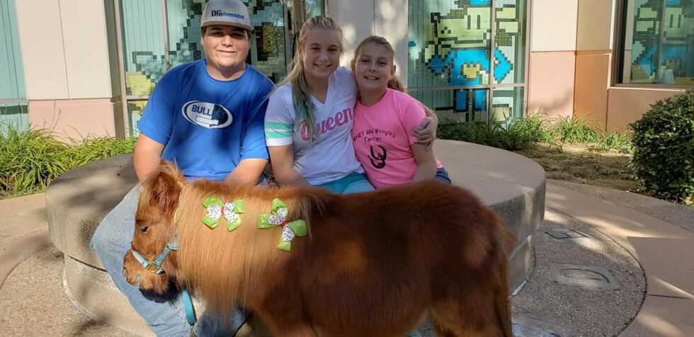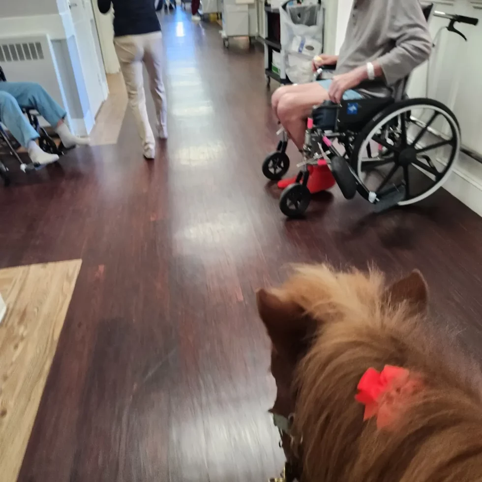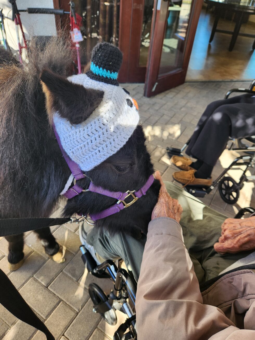 Off-site visits are for everyone throughout San Diego County. These visits offer a one-of-a-kind experience for our patients and their families. We provide one mini horse and handler to come and visit as well as help lift spirits and bring joy to those who can benefit most from our visits. We also educate our patients during our visits on basic horse care, safety, and more. Our donation fee for off-site visits is $250.